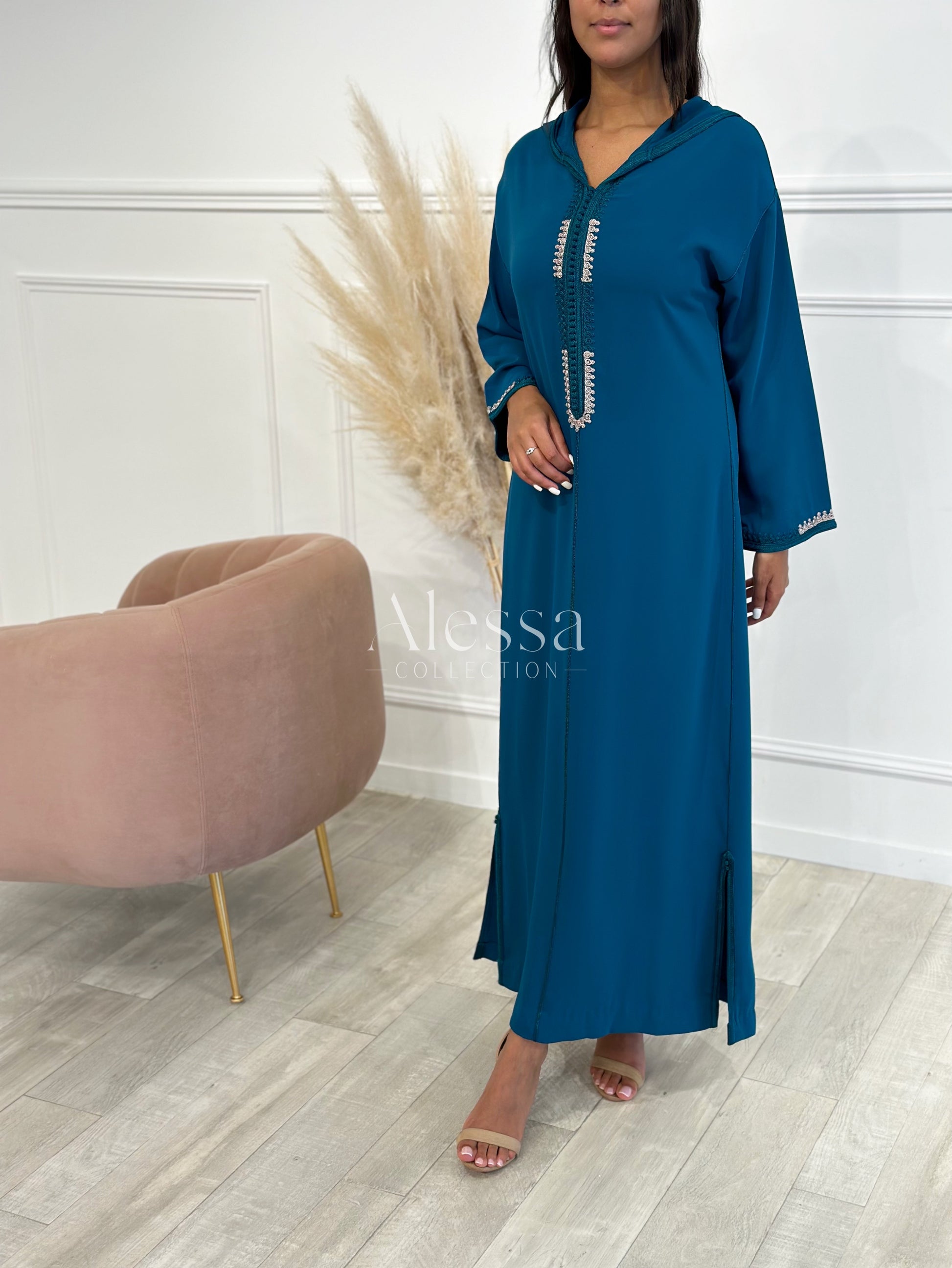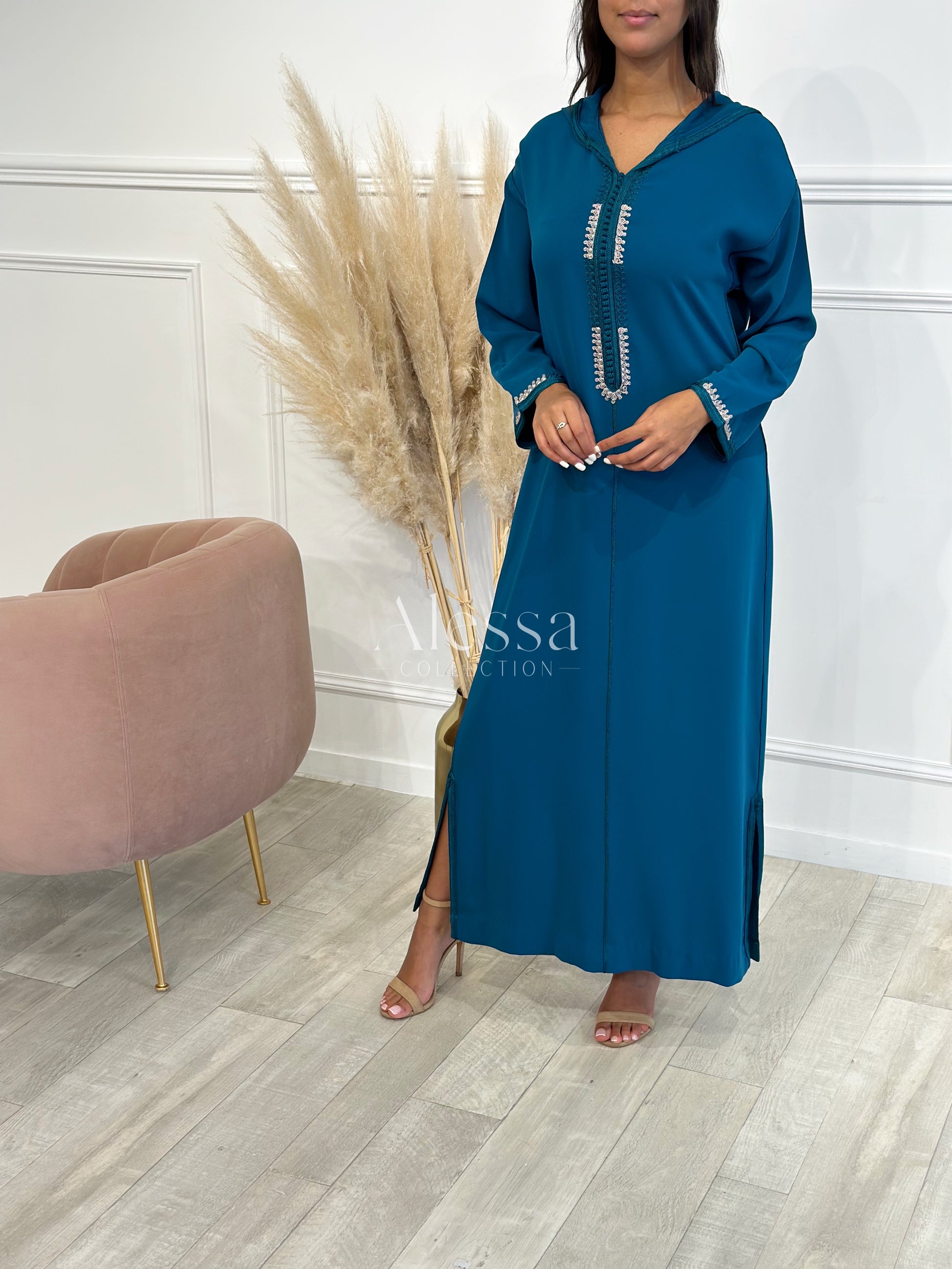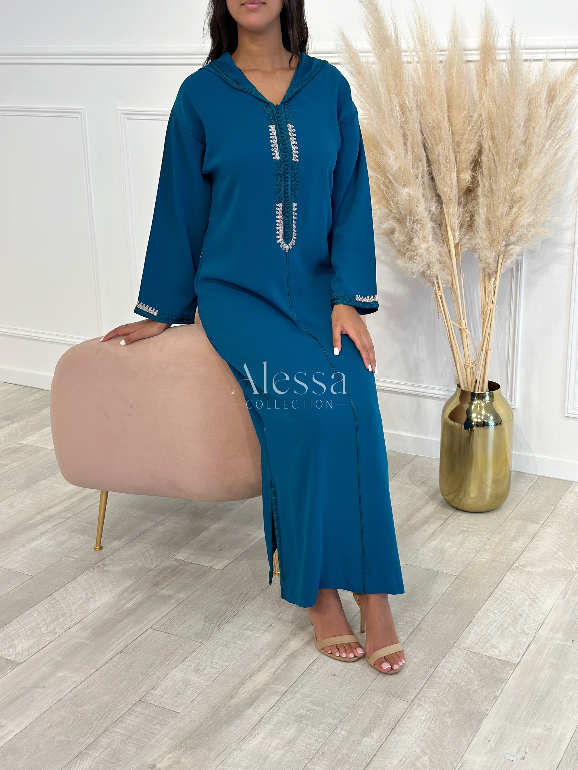 Sa longueur est de 1m40 de l'épaule jusqu'au bas de la robe au niveau de l'avant, comme l'intégralité de nos articles, nos tenues sont beaucoup plus évasées au niveau des hanches qu'au niveau du buste.