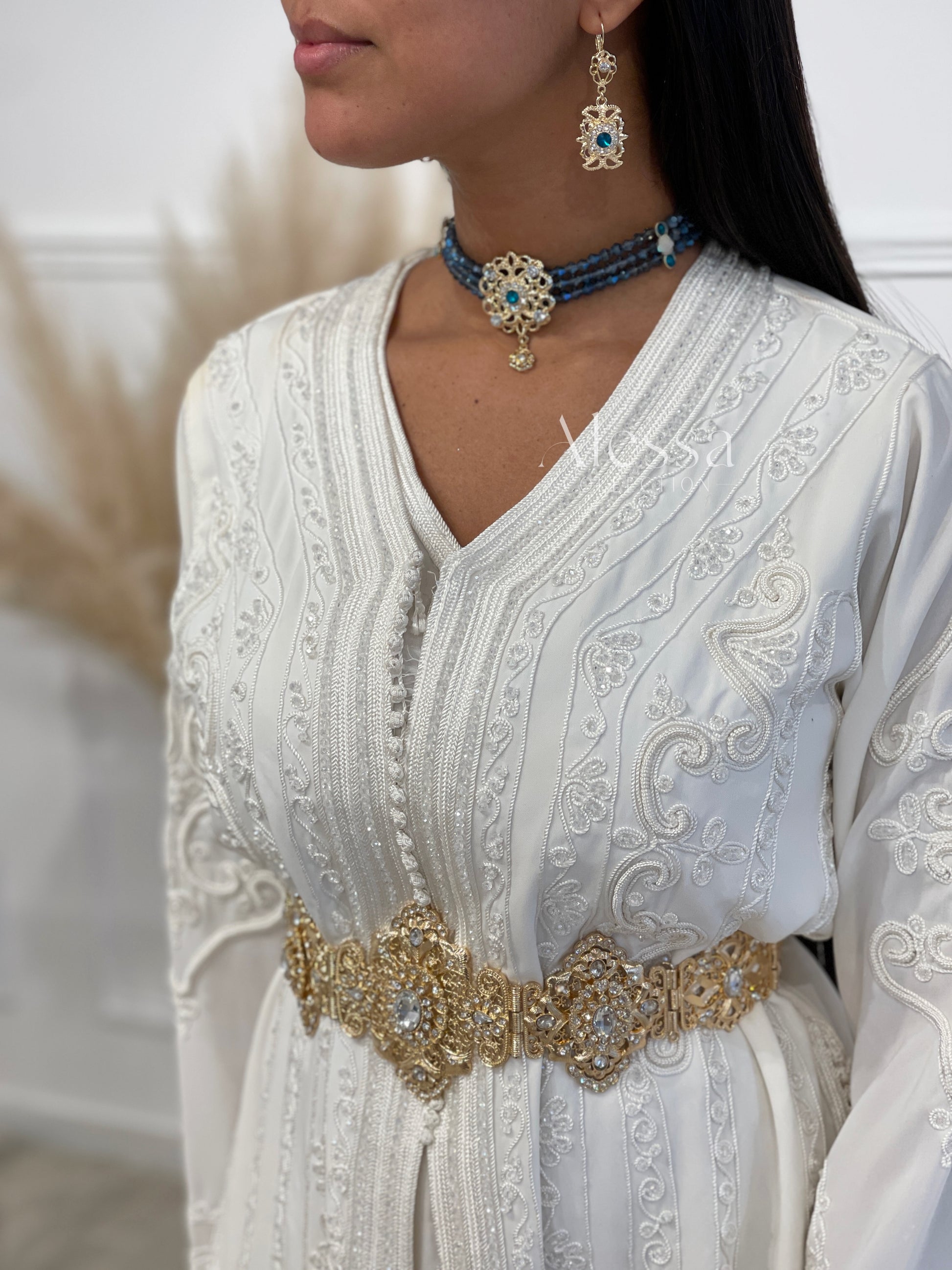 Notre parure Bella est composé d'un shoker (ras de cou) en perle ajustable a l’arrière et d'une paire de boucle d'oreilles.